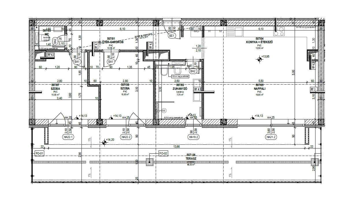 A projekt keretében egy 5.emeleti, nappali + 2 szobás lakás, 45 nm-es erkéllyel várja új tulajdonosát.